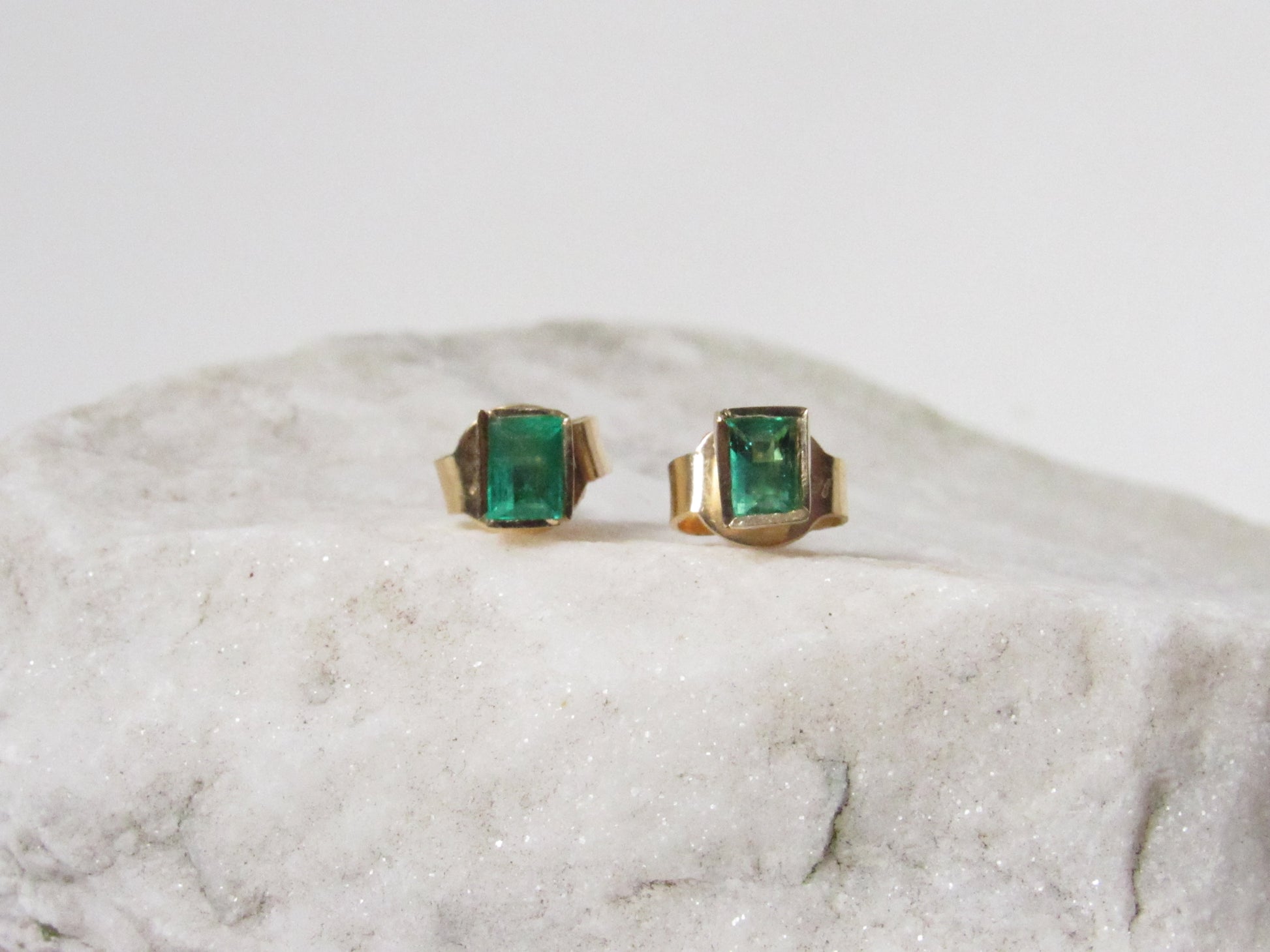 Aretes de oro de 18 quilates con esmeraldas naturales colombianas.
